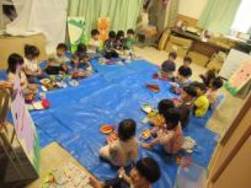 園に戻ってきてから、ワイワイルームでお弁当を食べました。