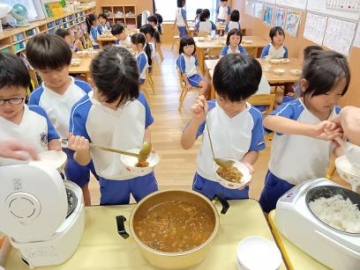 完成したごはんとカレーは、自分で食べれる分をよそい食べました。