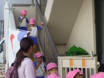 3歳児クラスも外階段を下りてくるのも2回目でしたが上手に歩いていました。
