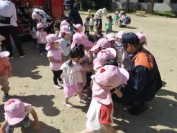 4.5歳児クラスは、火災の合図とともにスピーディーな行動で避難できていました。