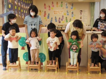 今日は、9がつに誕生した子どもたちを、乳児・幼児クラスに分かれてお祝いしました。