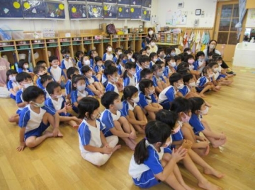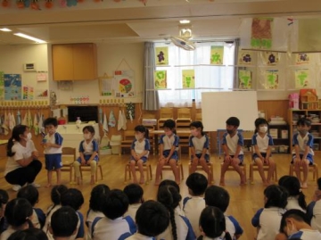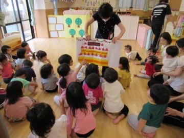 幼児組は、子ども達が大好きな ”よーかい じ~マン”という楽しいパネルシアターを見てお誕生児の