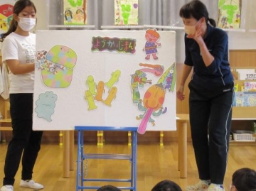 乳児組は、手遊びをしたり、パネルシアター ”やだっとちゃん!” を見たりして楽しみました。