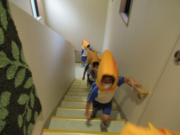 いつもと違う避難方法に・・・えっ~なんで?という表情の子ども達。