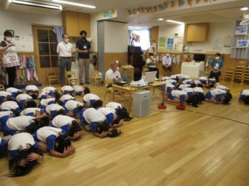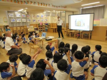 西区役所 防災担当の方による防災教室に4.5歳児が参加しました。