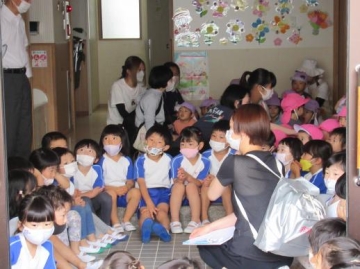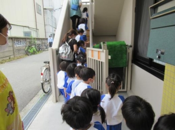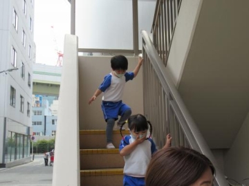 今年度初めて、幼児クラスは外階段から1階まで下って避難しました。