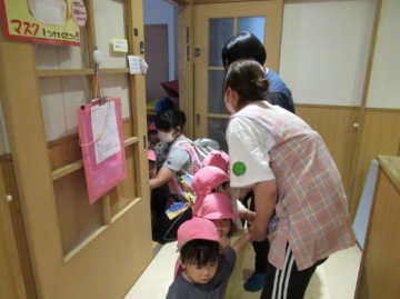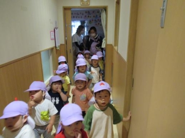 3歳児は、初めて階下に降りましたが、不安気な子ども達もいましたが、何とか一階にたどりつくことが