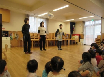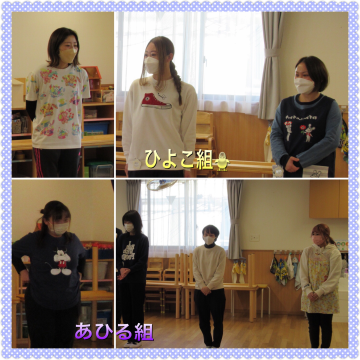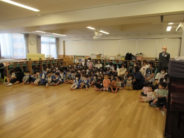 今日で、ひまわり組さんが最後ということで、みんな集まってもらいお別れ会をしました。