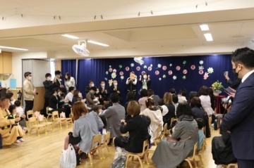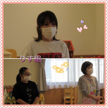 先ず、ひまわり組さんがみんなの前に出てきて、名前・行く小学校・保育園で楽しかったことを順番に言ってくれました。