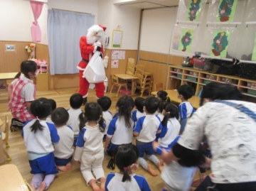 ひまわりさんは、もうサンタクロースを待ち構えていたようで、みんなで「メリークリスマス!!」