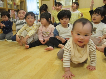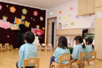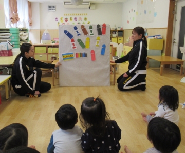 3月生まれのお友達の紹介をし、保育士による「どんないろがすき🎵」の