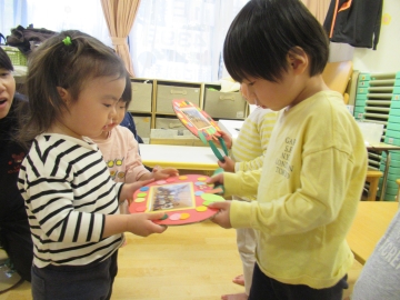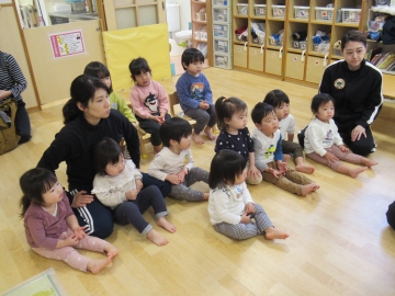 らっこ組、ぺんぎん組からいるか組のお友達へ お祝いの歌とプレゼントを渡しました💕