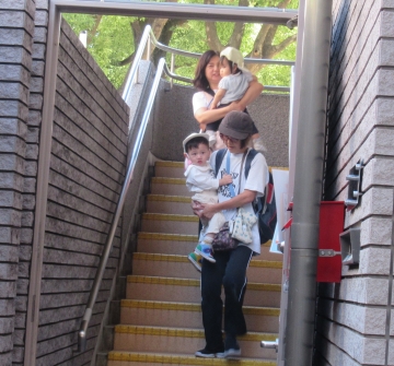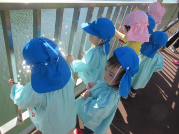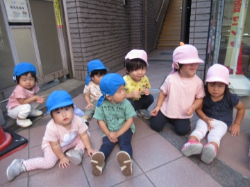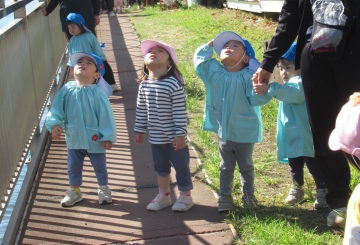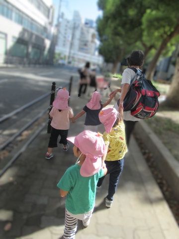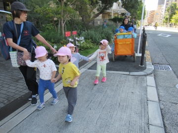 ぺんぎん組はお散歩車に乗り、いるか組は歩いていきました。