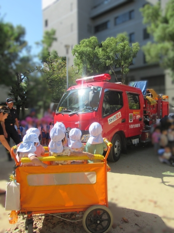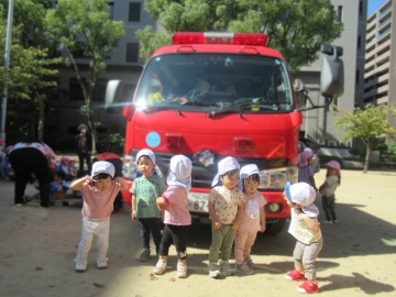 先に戻っていたらっこ組も部屋の窓から消防車を見ました🚒