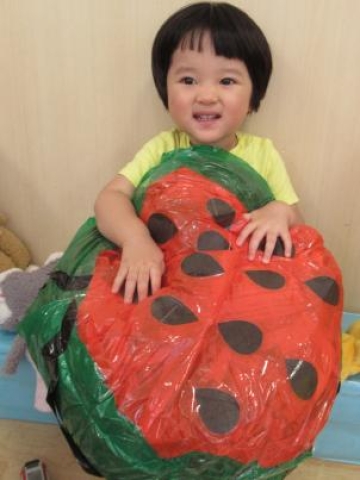 先生が作った大きなスイカが来たよ~。