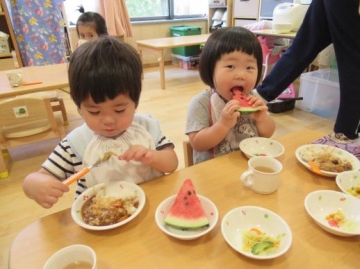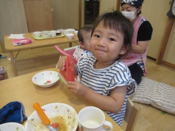 そして給食には本物のスイカが出ましたよ😊