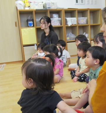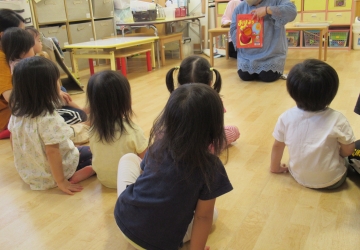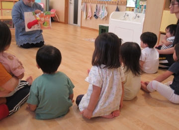 大型絵本やエプロンシアター、楽しい仕掛けもありみんなよく見ていましたよ。