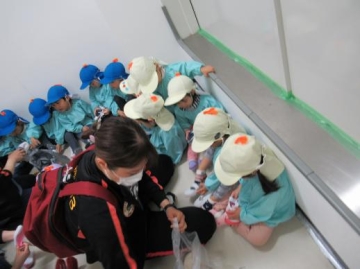 消防士さんから「おはし」の話を聞き、「はーい!」と返事をしていたいるか組の子ども達。