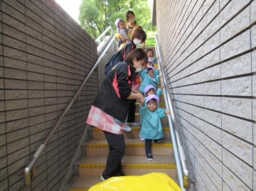 トコトコダンダンへ散歩に出かけ、おやつ取りゲームや、広場での散策、段差の上り下りを楽しんだ子ども達。なんと!友だち同士自然と集まって何やらお話する姿も見られましたよ☺