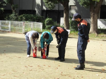 消火訓練に保育士が前に出ると、「がんばれー!!」と応援もしてくれましたよ😊