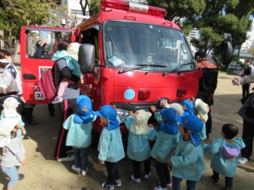 消防車を近くで見ることができて、保育園に帰ってからもお話していました。