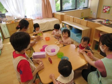 乳児の保育室で一緒に遊びませんか?