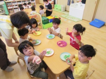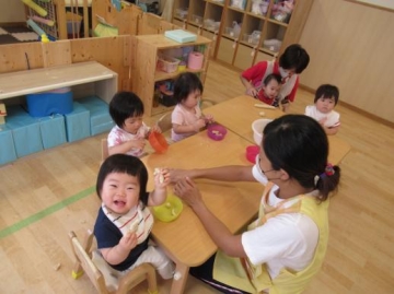 らっこ組は、食べたくて泣き出すお友達もいましたが嫌がることなく感触を楽しんでいました。