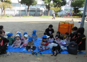 午前中は新町第2保育園に出かけ、魔女のお姉さん?にお菓子をもらって新町西公園で食べました。