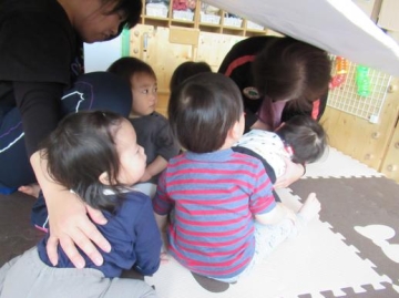 今日は1歳児ぺんぎん組、2歳児いるか組の保育参観がありました。