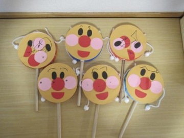 まずは、かわいいアンパンマンでんでん太鼓作りです。