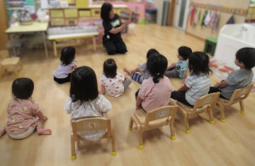 「もりのおんせん」の絵本を見て、みんなと一緒ってたのしいね💕と話をしました。