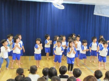 すみれ組「パイナップルダンス🍍」、さくら組「open the close👀」ひまわり組「虹🌈」の発表も見せてもらい大喜びの子ども達。早速、第3園でも楽しみたいと思います。