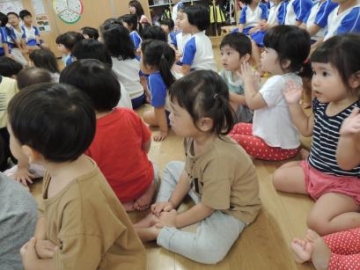 お誕生日のお友だちのお祝いをした後、「🌕十五夜のお月さま」にちなんで、お月見の話を聞きました。