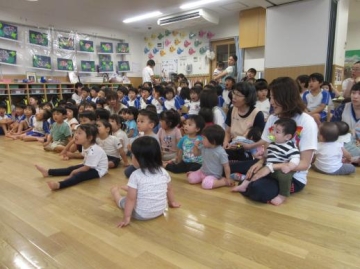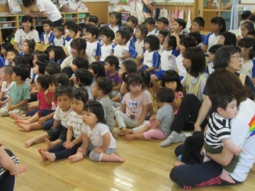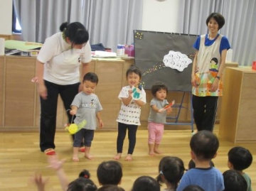 おたのしみ会では、七夕のお話のペープサートを見たり、みんなが作った笹飾りの見せ合いっこをしたり・・・。最後はみんなで♪たなばた♪の大合唱をしました☆★☆彡