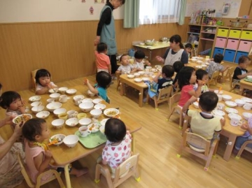 今日は0歳児(らっこ組)の離乳食参観でした。